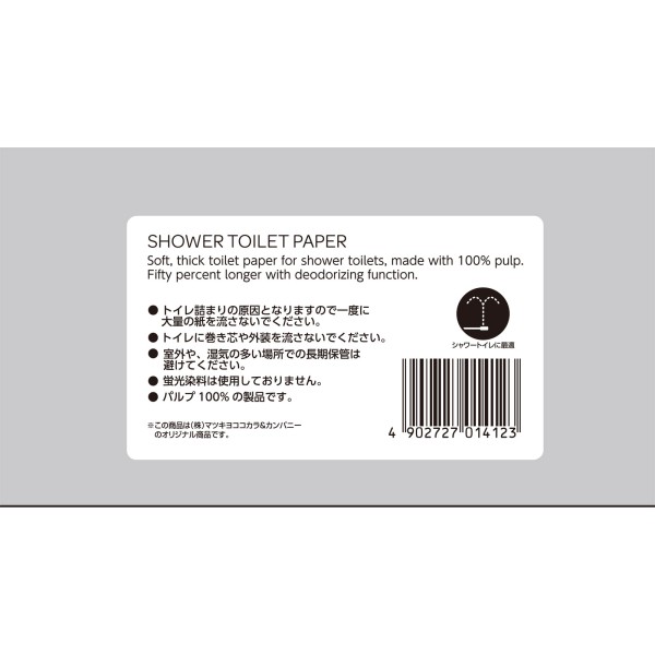 パルプ100パーセントのふんわり厚手シャワータイプのトイレットペーパーです。