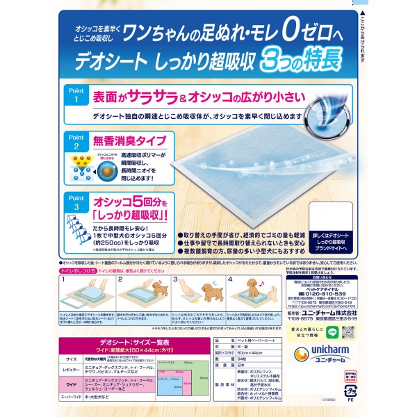 데오시트 확실히 초흡수 무향 소취타입 와이드 54매 유니참펫케어 > 고기능