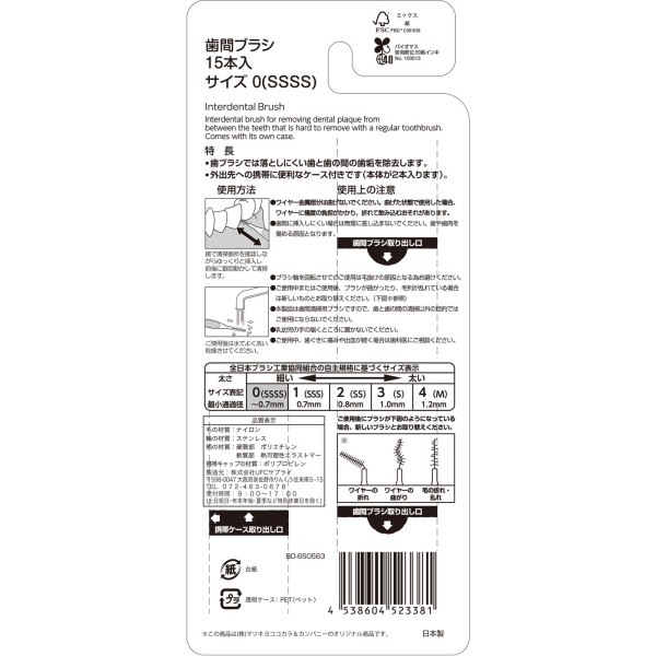 마츠키요 치간칫솔 사이즈1(SSSS) 15개 > 치간 브러시
