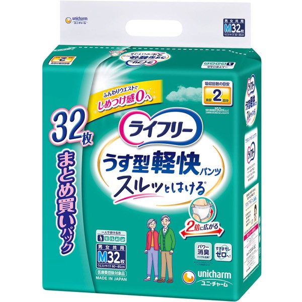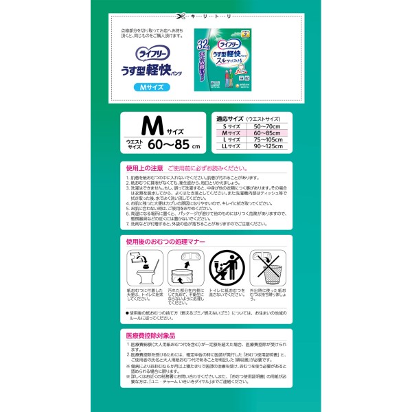 라이프리 얇은형 경쾌 팬츠 M 32매 유니참 > 슬림형