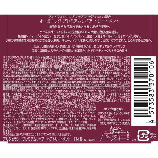 알제란 프리미엄리페어 헤어트리트먼트 480ml > 알쥬란