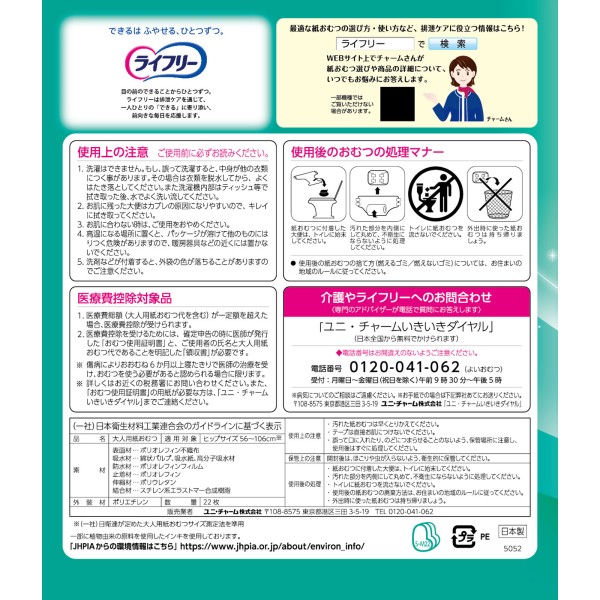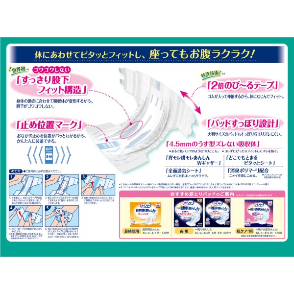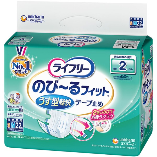 라이프리 늘어나는 피트 얇은형 경쾌 테이프잠금 SM 22매 유니참 > 테이프 고정 타입
