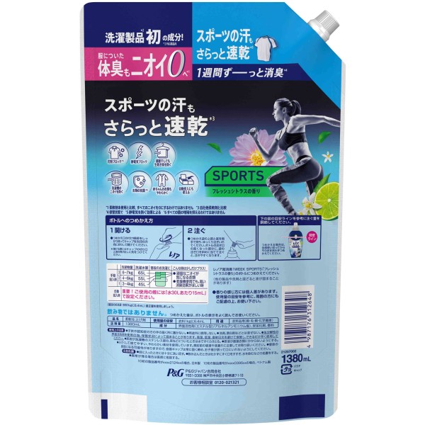 레노아 초소취1week SPORTS 프레쉬시트러스 향 초특대 사이즈 1380mL P&G재팬