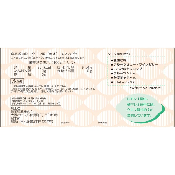 구연산(무수) 2g×30 켄에이제약 > 식품 첨가물