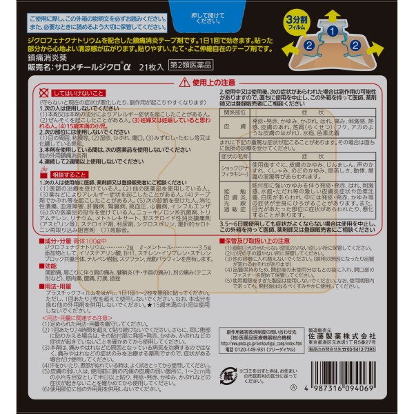 살로메칠 디클로알파 21매 사토제약 > 플라스타 (냉감)