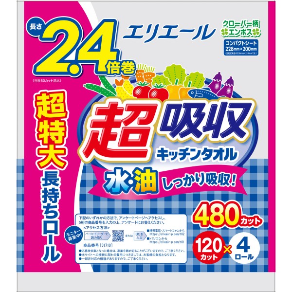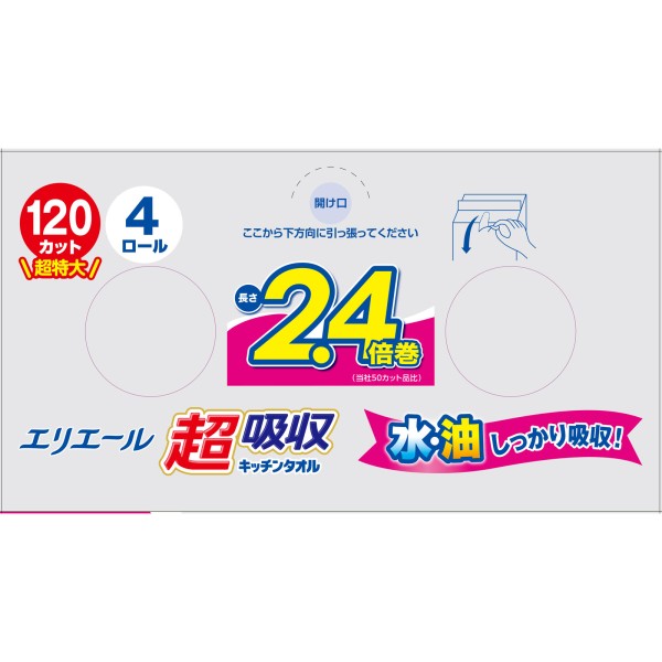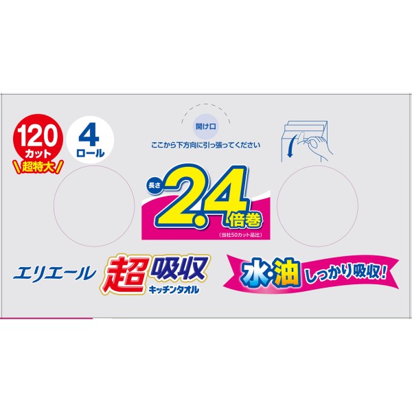 에리에르 초흡수 키친 타올 4R 120컷 다이오제지 > 키친 페이퍼 롤형