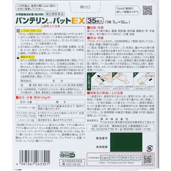 반테린코와 패드 EX 35매 코와 > 플라스타 (냉감)