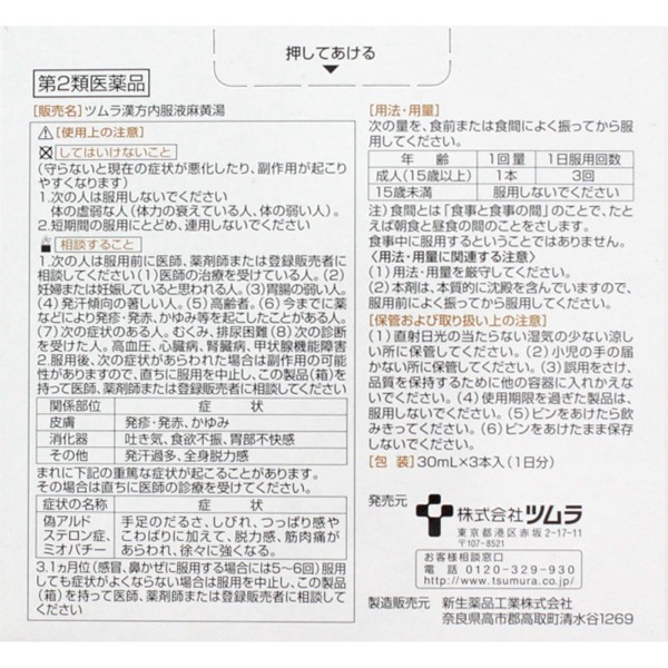 츠무라 한방 내복액 마황탕 30ml×3 츠무라 > 한방 (갈근탕)