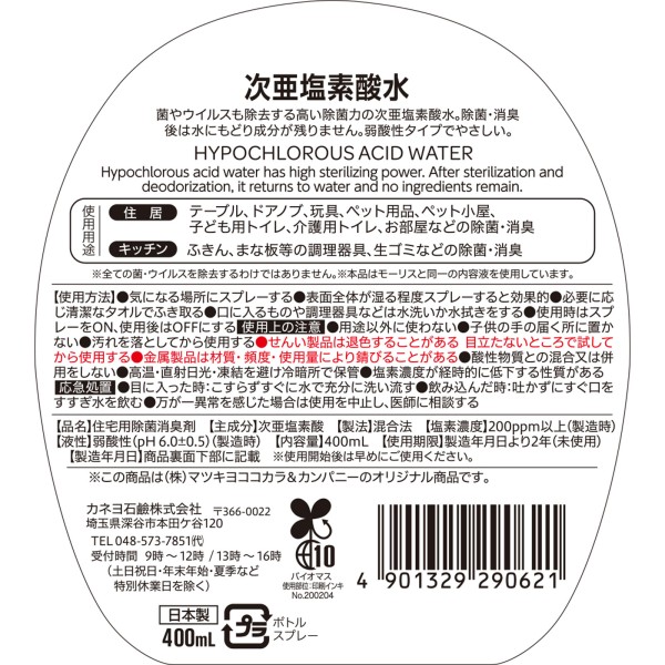 마츠키요 차아염소산수 400ml > 주방용 제균 스프레이