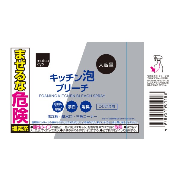 台所の気になる汚れにポイント噴射で泡が素早く効果を発揮。食器・まな板などの除菌・漂白・消臭に