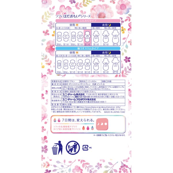 소피 하다오모이 특히 많은 낮용 260 날개 포함 26매 유니참 > 하다오모이