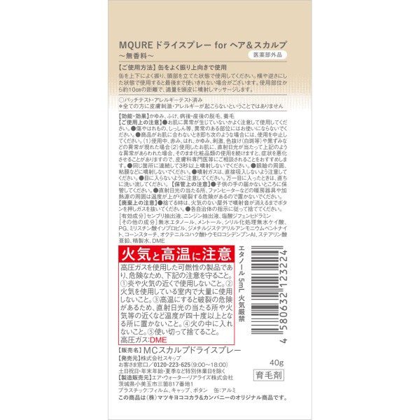 MQURE 약용 스캘프 케어&모이스트 드라이 스프레이 무향 40g > 엠큐어