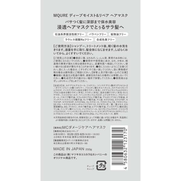 MQURE 딥 모이스트&리페어 헤어 마스크 200g > 엠큐어