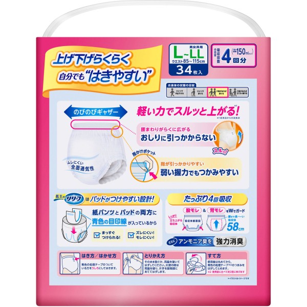 리리프 팬츠 타입 올리기·내리기 편한 얇은 팬츠 4회분 L-LL 34매 카오