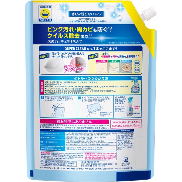 배스 매직클린 SUPER 거품 세정 무잔향 대형 스파우트 1200ml 카오 > 욕실 클리너
