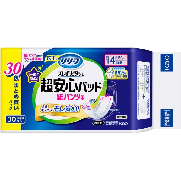 리리프 종이 팬츠용 패드 흘러내림 없이 딱 붙는 초안심 4회분 30매 카오 > 야간용