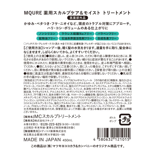 엠큐어 약용 스캘프 케어&모이스트 트리트먼트 450ml > 엠큐어