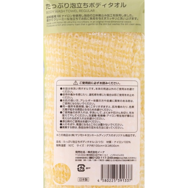 마츠키요 넉넉한 거품의 바디 타올 보통 1매입 > 나일론 타월