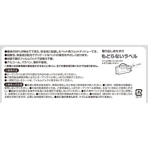 ペットの顔・手足・おしりの汚れ落としに、身の周り品の除菌に。