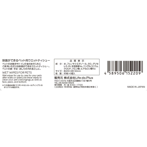 마츠키요 살균 가능한 펫용 웨트 티슈 80매×3개 > 기타