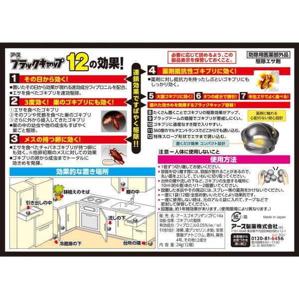 블랙 캡 1년간 효과! 부엌이나 세면대 아래 등의 바퀴벌레 대책 구제용 독 미끼제 12개입 아스제약 > 독이제