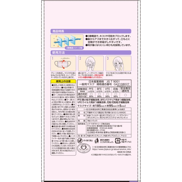 마츠키요 귀가 아프지 않은 마스크 큰 사이즈 7매 > 플리츠