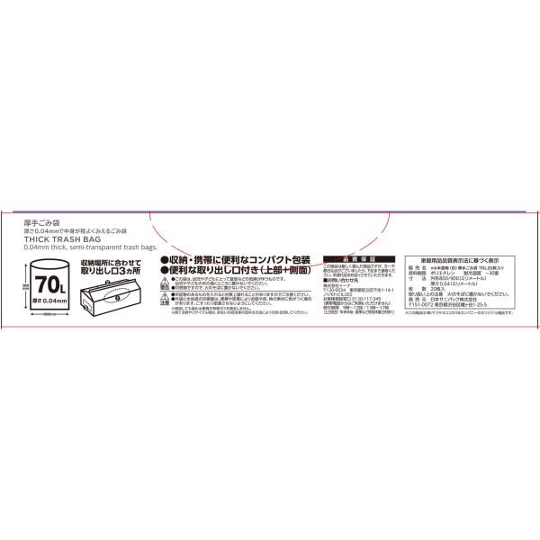 CO2排出20%OFF。厚さ0.04ミリで中身が程よく見えるゴミ袋