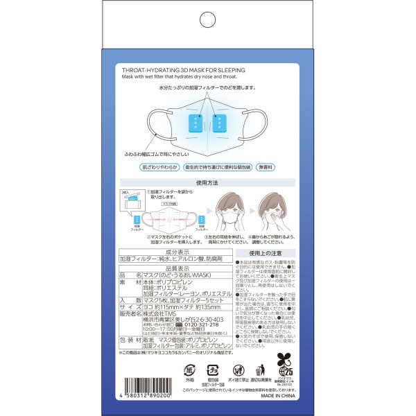 mk 목·습윤 마스크 취침용 입체 W M5매입 > 특수 마스크