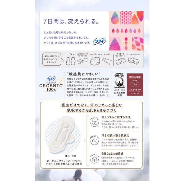 소피 하다오모이 오가닉 코튼 특히 많은 낮용 날개 포함 230 24매 유니참 > 하다오모이 오가닉