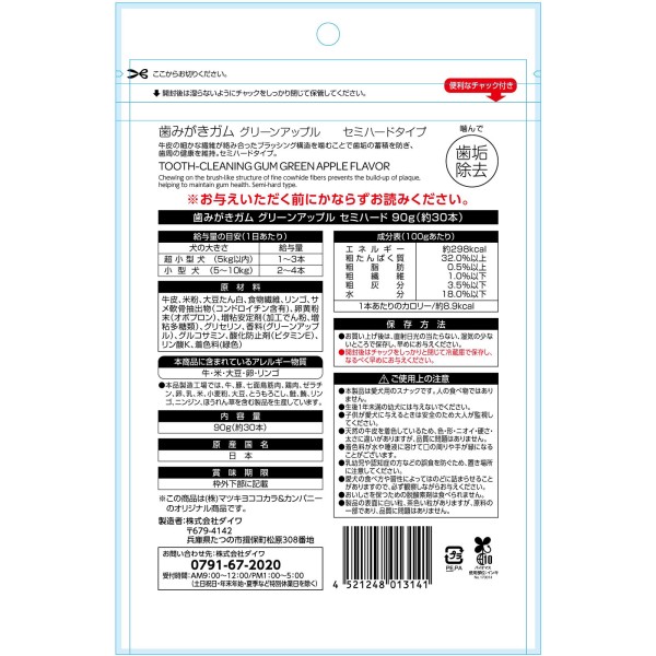 牛皮の細やかな繊維が絡み合ったブラッシング構造で歯周の健康を維持。獣医師推奨オボプロン配合。カロリーが気になるワンちゃん用に低カロリー・低脂肪。軟骨サポート効果のグルコサミン&コンドロイチン配合。