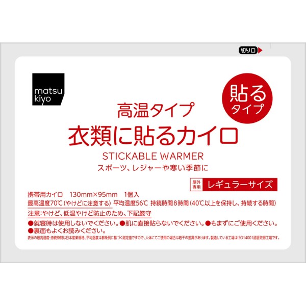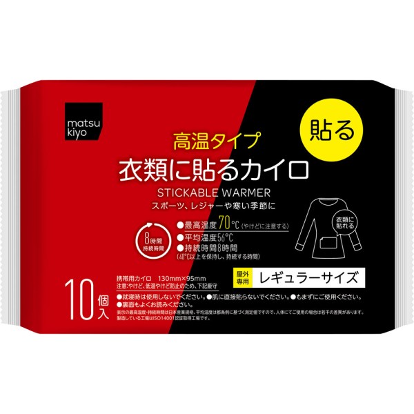 마츠키요 옷에 붙이는 핫팩 고온 타입 레귤러 10매입 > 붙이는 레귤러 카이로