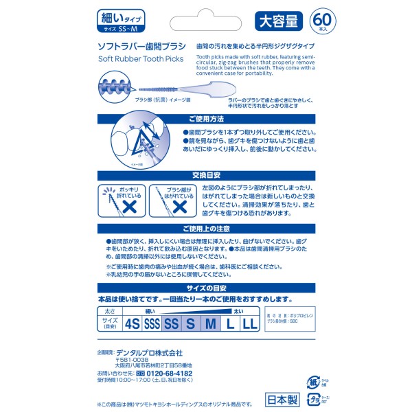 마츠키요 소프트 러버 치간 브러시 SS-M 60개입 > 치간 브러시