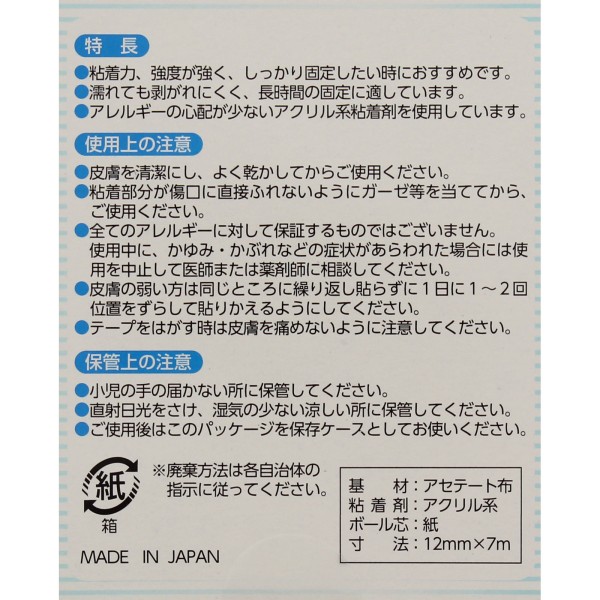 粘着力、強度が強く、しっかり固定したいときにおすすめです。また、低刺激性粘着剤を使用しており安心です。