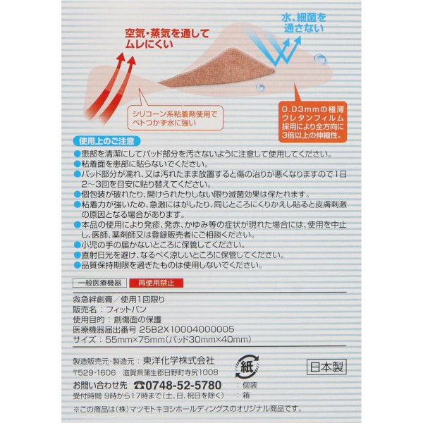 透明フィルムで目立ちにくく、シリコーン粘着剤使用により、肌に密着・剥がれにくさをコンセプトに設計。