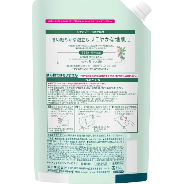 메리트 샴푸 리필용 1080mL 카오 > 메리트