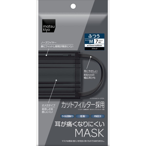 마츠키요 귀 아프지 않은 마스크 블랙 7매 > 플리츠
