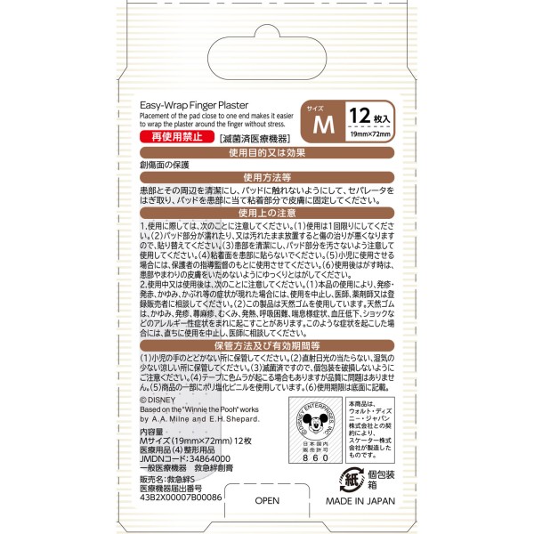 마츠키요 손가락에 감기 쉬운 반창고 곰돌이 푸 12매 > 구급 밴드(스탠더드 타입)