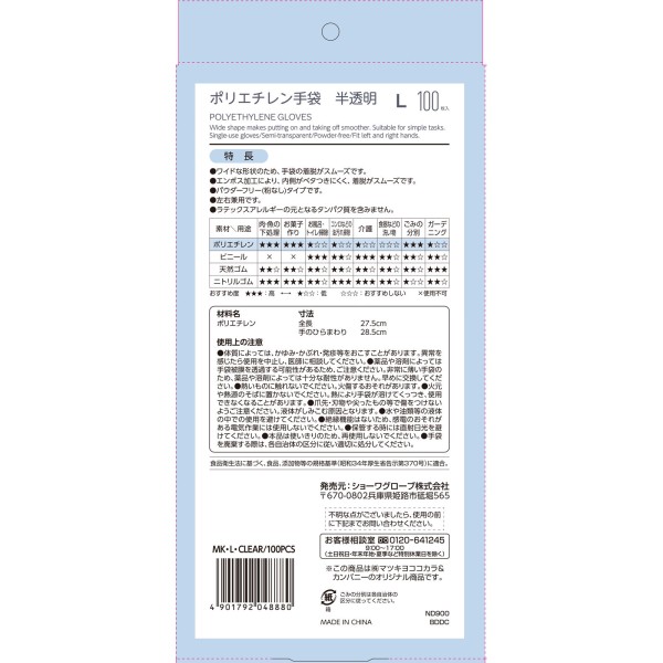 마츠키요 폴리에틸렌 장갑 L 100매 > 폴리에틸렌