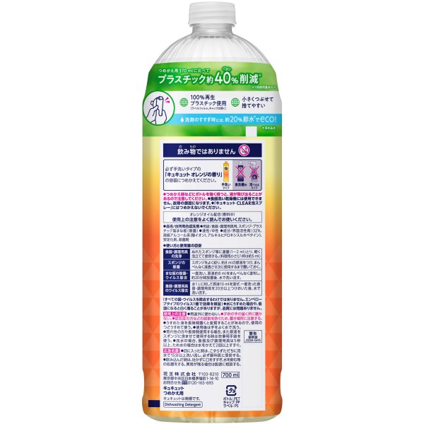 キュキュット独自の処方で、ベッタリ油汚れを細かく分解!長もち泡が、すすいだ瞬間一気にパッ!汚れ落ちを指先でキュッと実感。