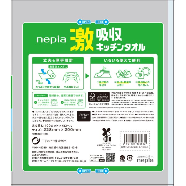 네피아 격흡수 키친 타올 100컷 4R 오지네피아 > 키친 페이퍼 롤형