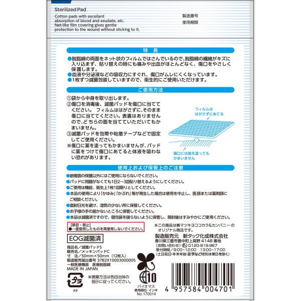 마츠키요 멸균 패드 S 12매 > 멸균 패드