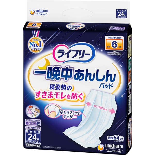 라이프리 밤새도록 안심 소변 패드 슈퍼 24매 유니참 > 기타