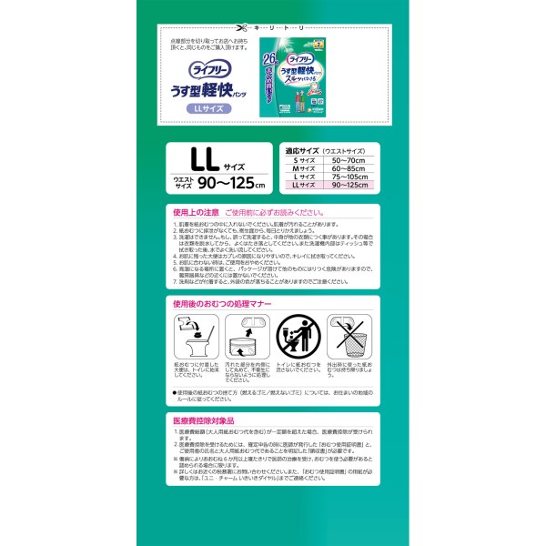 라이프리 얇은 경쾌 팬츠 LL 26매 유니참 > 장시간