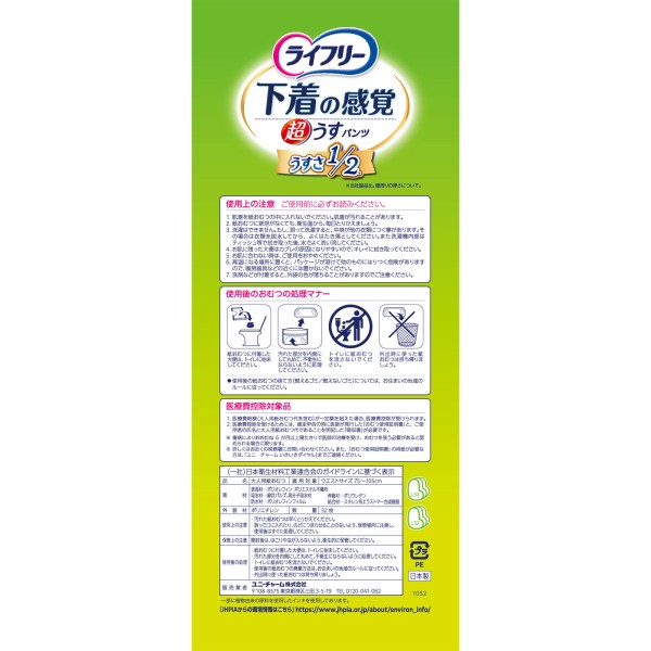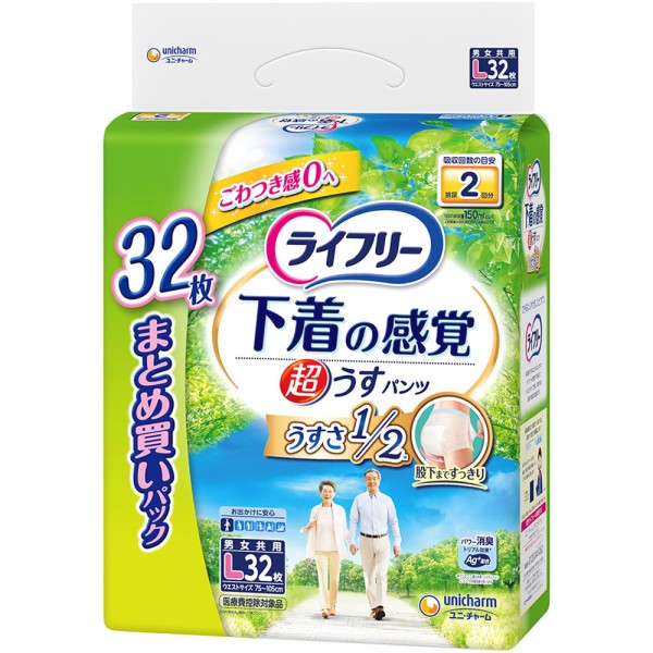 라이프리 초박형 속옷 느낌 팬츠 L 32매 유니참 > 슬림형