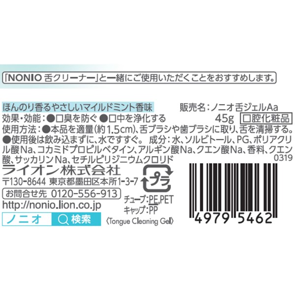 NONIO(노니오) 혀 전용 클리닝 젤 45g 라이온 > 기타 (구취 확인 정제·혀 클리너 등)