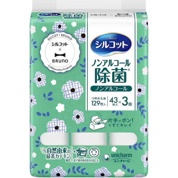 실코트 논알코올 살균 리필 BRUNO 디자인 43매 3P 유니참 > 일반