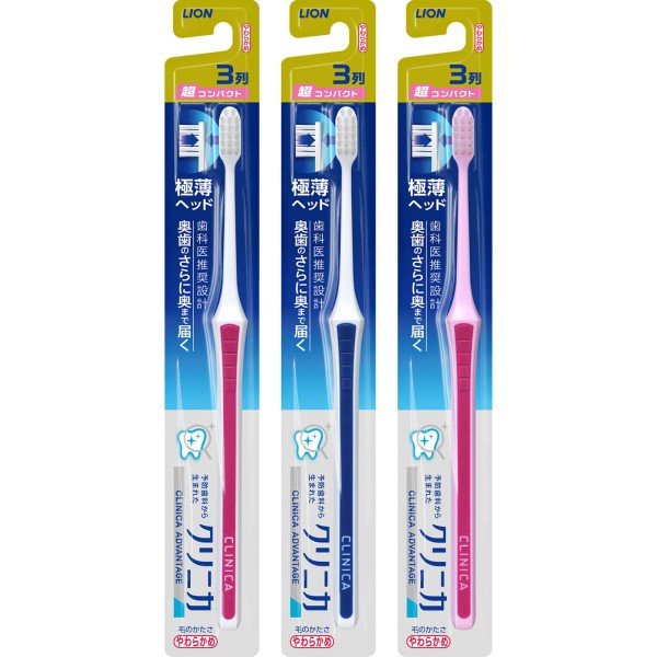 クリニカアドバンテージハブラシ3列超コンパクト1本やわらかめ歯ブラシ