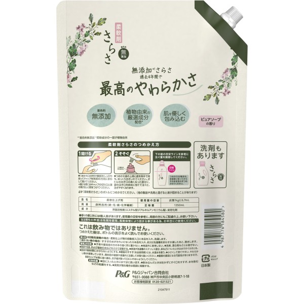 사라사 유연제 리필 초점보 1350ml P&G재팬