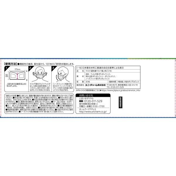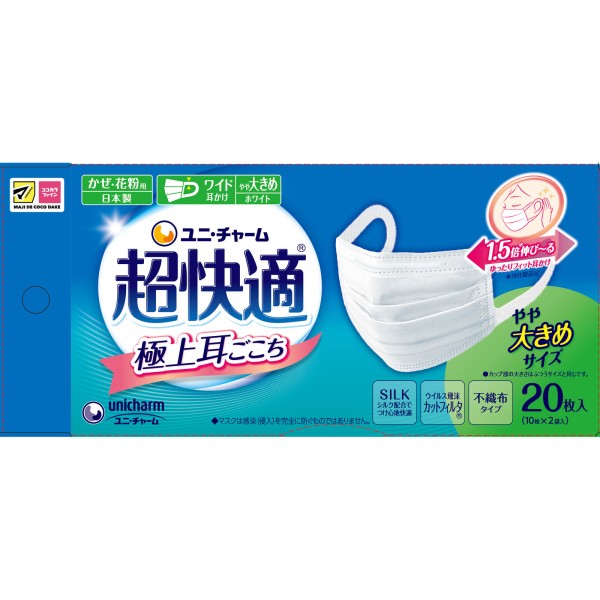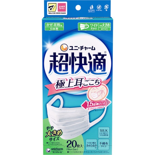 초쾌적 마스크 최고의 귀 편안함 큰 사이즈 20매 유니참 > 대용량