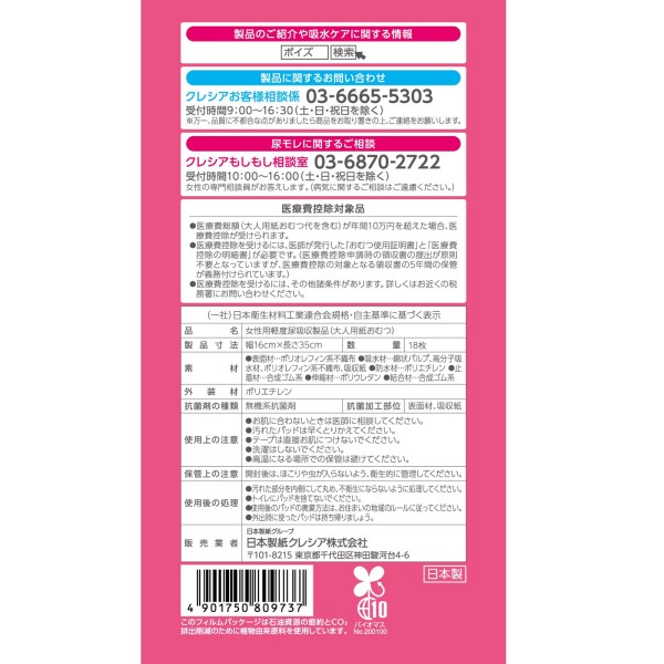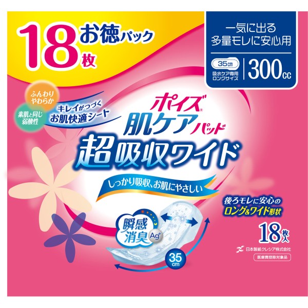 포이즈 피부 케어 패드 초흡수 와이드 여성용 알뜰 팩 18매 일본제지크레시아 > 패드 (다량)
